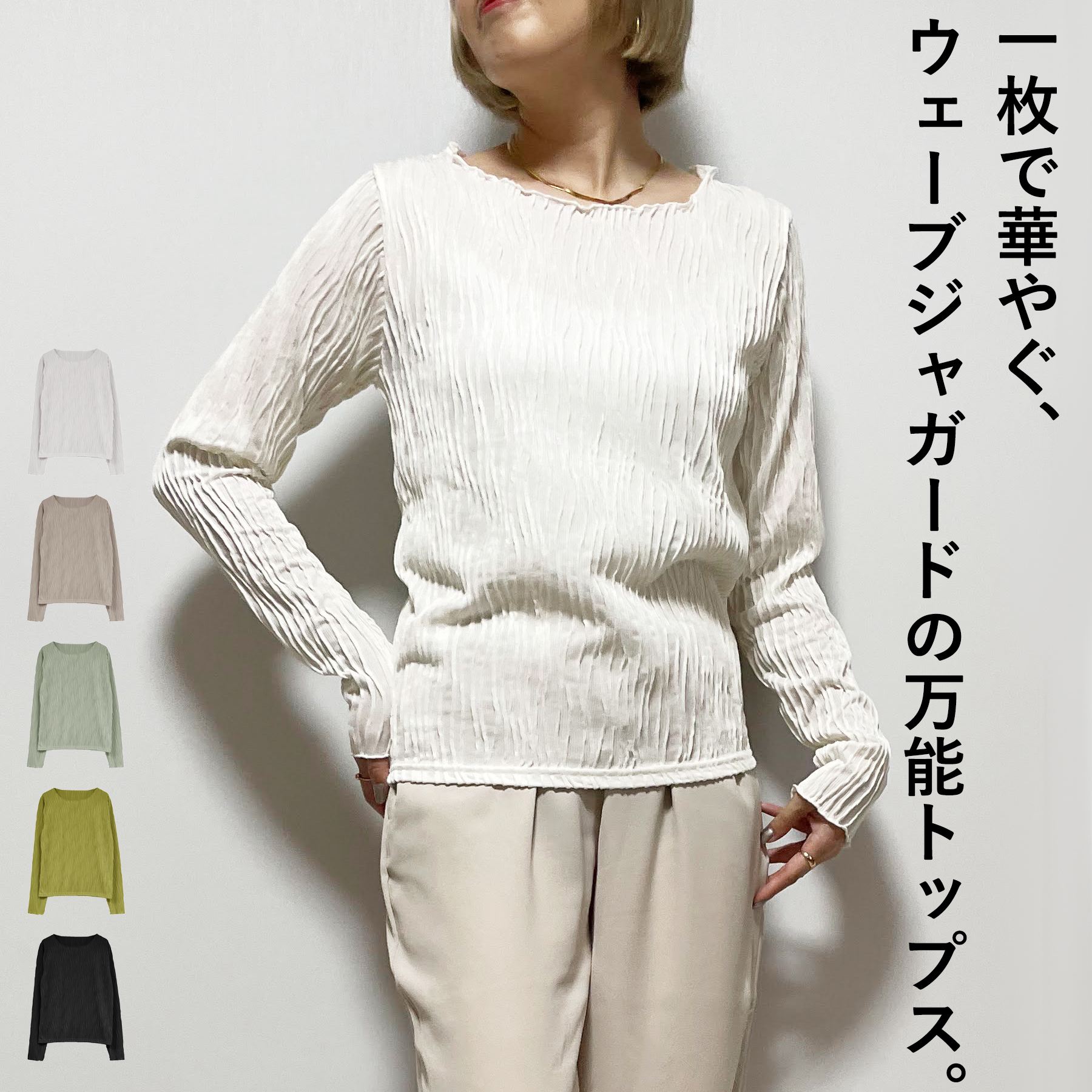 \SALE39%OFF/Tシャツ レディース 長袖 ウェーブ ジャガード クルーネック ロンT 春 秋 インナー メロー 大人 20代 30代 40代 50代