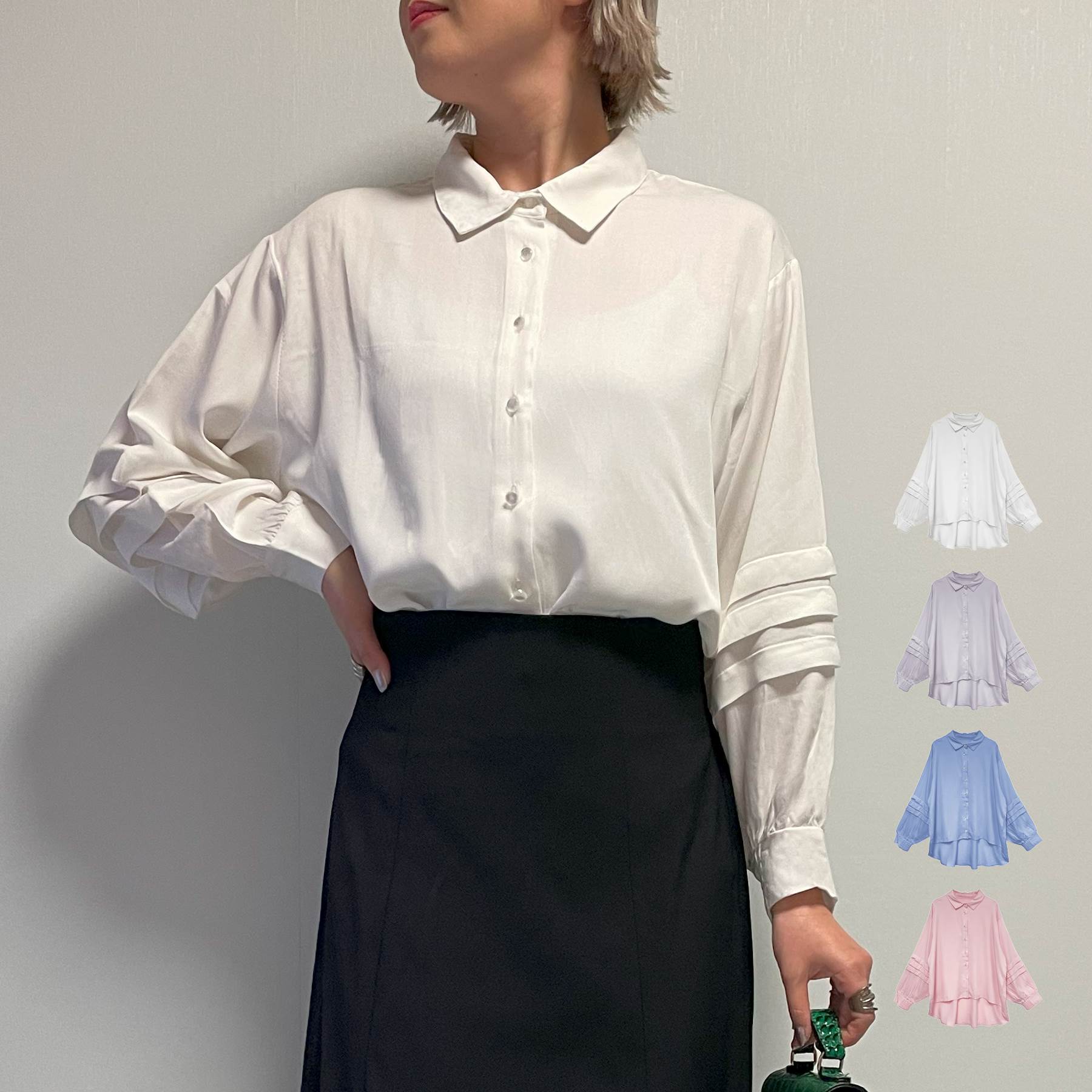 \SALE59%OFF/ブラウス レディース 春 秋 シャツ ボリューム袖 パールボタン オフィス きれいめ OL 大人 体型カバー ゆったり 20代 30代 40代 50代 韓国 ファッション