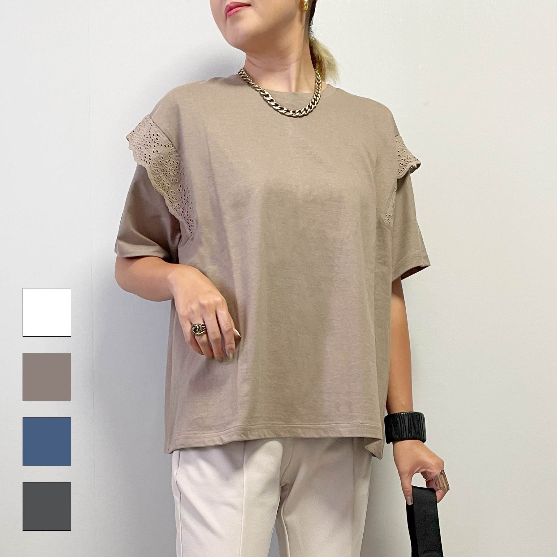 \SALE40%OFF/Tシャツ レディース 半袖 夏 コットン100% 袖レース 綿100 クルーネック 大人 体型カバー ゆったり 20代 30代 40代 50代 韓国 ファッション