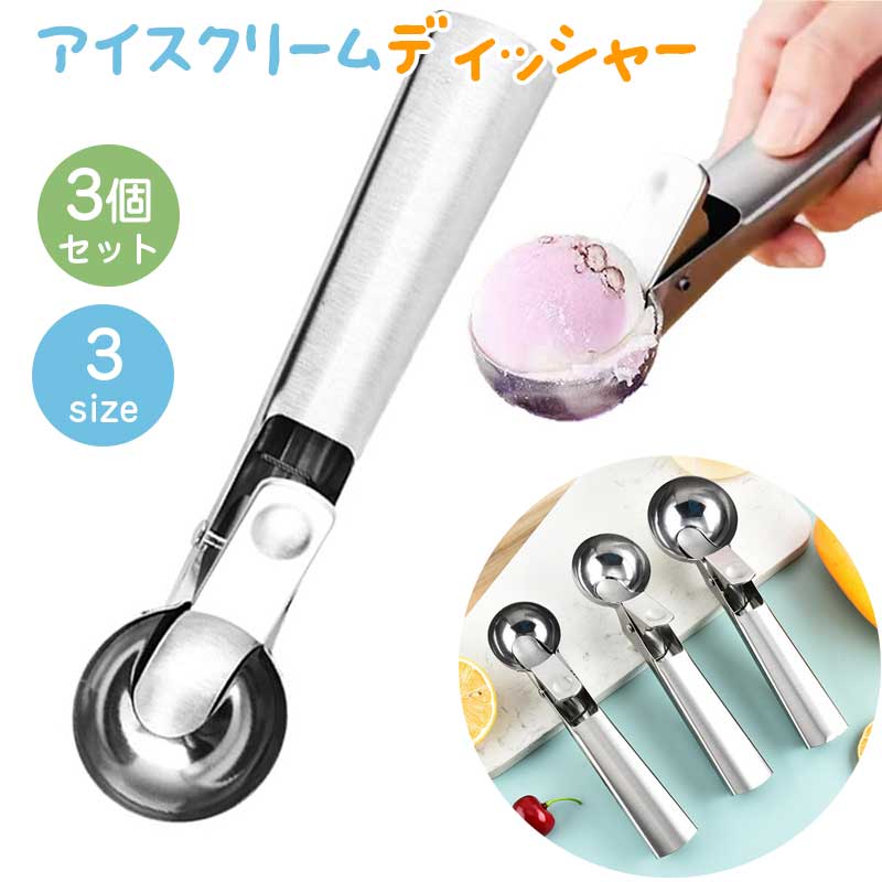 アイスクリームディッシャー 【大中小の3個セット】 アイスクリームスクープ アイススコップ アイスクリームスプーン アイススクープ アイス すくう 器具 ステンレス製 多機能 デザートスプーン ジェラート フルーツ すくい スクープ キッチン用品