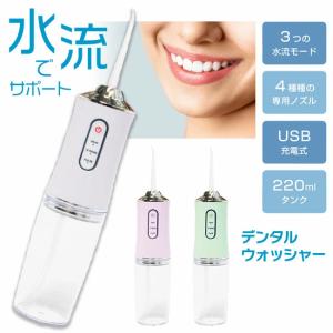 デンタルウォッシャー コンパクト収納 スライド式タンク 190ml 4種類モード IPX7 USB充電 標準ノズル2本 旅行 出張 ホワイト HC-JF04WH