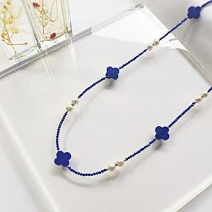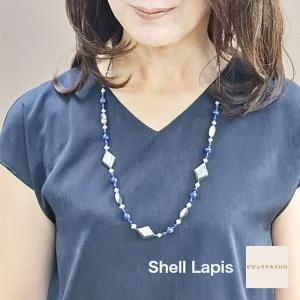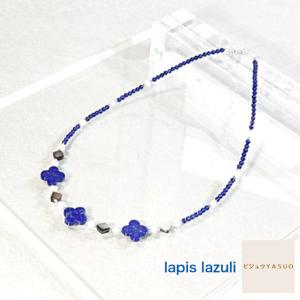 ネックレス 天然石 ラピスラズリ シェル ネイビー 45cm シンプル デコネック クローバー おしゃれ 大人