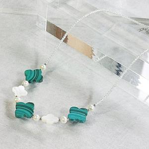 マラカイト シェル ネックレス チョーカー シンプル クローバー グリーン ホワイト カジュアル ふだん使い 母の日 ギフト プレゼント
