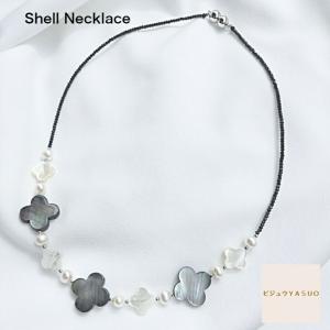 シェル ネックレス パール ブラック ホワイト マグネット クラスプ ブラックスピネル 裏表なし 日常づかい 自分用 誕生日 ギフト プレゼント