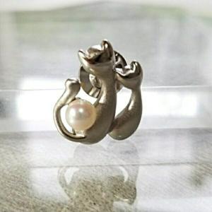 ブローチ パール シルバー おしゃれ 猫 ピンブローチ ワンポイント 母の日ギフト