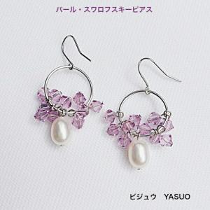 ピアスピアス 揺れる スワロフスキー パープル 淡水パール キラキラフックタイプ 誕生日 自分用 ギフトプレゼント