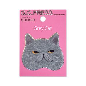 G.C.PRESS ステッカー 墨絵 ねこ はちわれ 522-23|文房具 デコレーション シール 防水 耐水 スマホ 猫 キャット