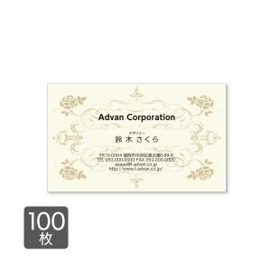 名刺 印刷 作成 ショップカード カラー100枚 テンプレートで簡単作成 ヨーロッパ エレガント バラモチーフ ゴールド風 初めての作成でも安心 card-054