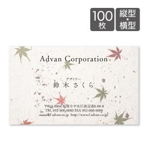 名刺 印刷 作成 ショップカード カラー100枚 テンプレートで簡単作成 秋 紅葉 和紙風 和風 初めての作成でも安心 card-102