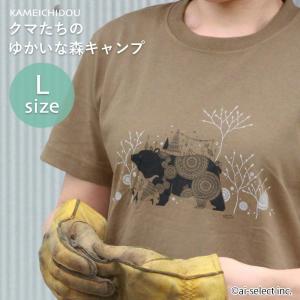 かめいち堂 Tシャツ Lサイズ ブラウン 半袖 透けない クマたちのゆかいな森キャンプ レディース メンズ キャンプ アニマル かわいい くま we