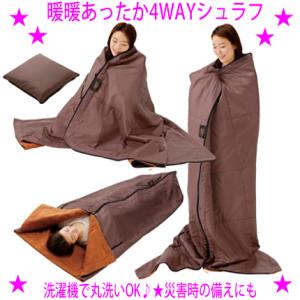 暖暖あったか4WAY シュラフ 全面に中綿とアルミシート入り寝袋 洗濯機丸洗いOK たたむとクッションに アウトドア 災害グッズ メイダイ正規品