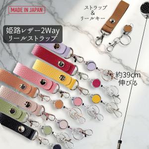 リールストラップ 2WAY 姫路レザー 日本製 約39cm 伸びる リールキーホルダー