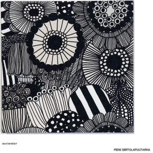 アリス 北欧 ファブリックパネル 白黒 SS marimekko PIENI SIIRTOLAPUUTARHA 20×20 小さい ピエニシイルトラプウタルハ モノトーン 設置簡単 賃貸OK