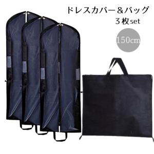 ドレスカバー ロング 150cm 3枚セット ドレスバッグ 不織布 持ち運び バッグ 衣装バッグ 収納