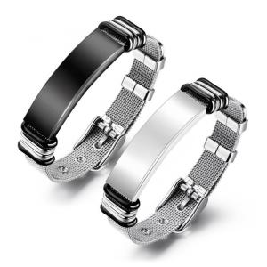 プレートブレスレット メッシュストラップ メンズ ステンレス シルバー ブラック ベルト式 送料無料