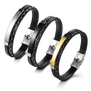 レザーブレスレット メンズ 2層 ブラック シルバー PU 男女兼用 [送料込み]