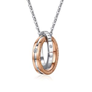 [小ぶり]ダブルリングペンダント 2連 ネックレス ステンレス ローズゴールド トップ径20mm 送料無料