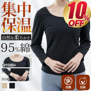 インナー あったかインナー シャツ レディース クルーネック 長袖 8分袖 tシャツ 肌着 下着 女性 コットン 無地 シンプル 黒 ベージュ トップス 綿95% M L