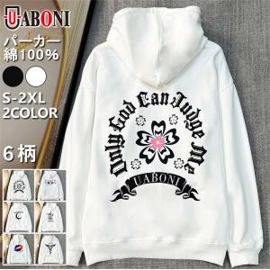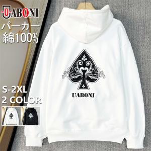 パーカー 長袖 EU製 Uaboni Paris ユアボニ 綿100% 保温 柔らか ロゴ スペード柄 ゆったり スウェット トップス プルオーバー フーディー 秋冬
