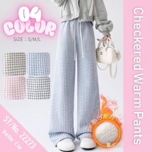 ワイドパンツ ストレート 裏起毛 裏シャギー ウエストゴム チドリ レディース 韓国ファッション あったか 冬 極暖 防寒 楽ちん ルームウェア 柄