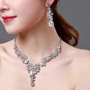 クリスタルストーン ネックレス ピアス 2点セット 結婚式 パーティー 発表会