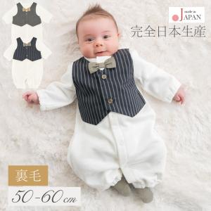 日本製 セレモニードレス 男の子 50 60 ベスト付き 裏毛 ツーウェイオール ホイップクリーム 長袖 お宮参り 新生児 ベビー 退院 退院着 出産祝い 出産準備
