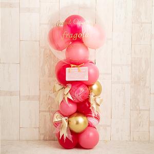 バルーン電報 開店祝い お誕生日 お祝い オープン ボックス 名入れ バルーンギフト おしゃれ リボンデハッピーストロベリーシェイク・バルーンスタンディング