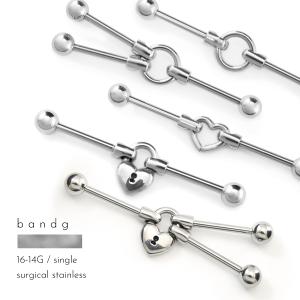 バーベル インダストリアル インダス ステンレス サージカルステンレス 金属アレルギー ボディピアス 14G 16G ロングバーベル ハート パドロック