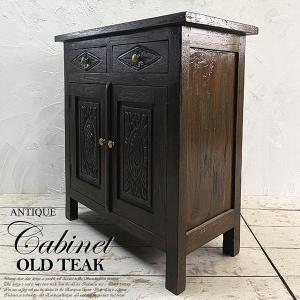 アジアン家具 キャビネット 木製 アンティーク チーク チェスト オールドチーク 古木 アジアン 家具 無垢 彫刻 収納棚 おしゃれ
