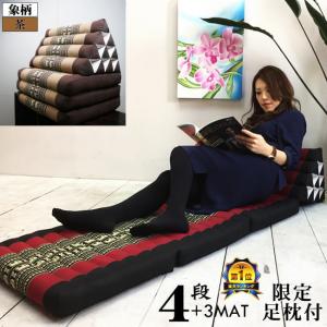 三角枕 タイ 三角 クッション 枕 4段 マット3枚 象柄 黒赤 座椅子 昼寝 ごろ寝 マット アジアン