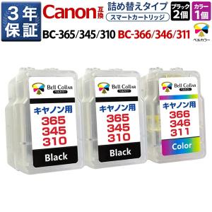 3年保証 キヤノン 用 BC-365 BC-366 BC-345 BC-346 BC-310 BC-311 XL スマートカートリッジ 詰め替え インク TS3530 他 顔料 ブラック 2個 カラー. ベルカラー