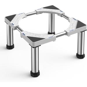 洗濯機 置き台 かさ上げ台 ステインレス製 防振パッド付き 耐荷重約300kg 伸縮式 幅奥行:45.5cm~64cm 昇降可能置き台 かさ上げ 高さ調節 減音防振