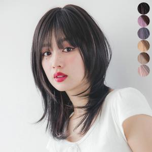 ウィッグ 自然 ミディアム ウルフ セミロング ウルフカット フルウィッグ レディース ウイッグ インナーカラー かつら 女性 グラデーション 黒髪 ハイトーン FKR