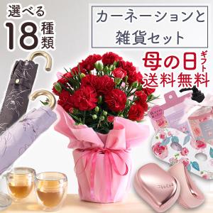 母の日 2026 ギフト プレゼント 花 鉢植え 選べる21通り 花と雑貨 セット カーネーション鉢4号 折り畳み傘 扇子 エプロン 早割実施中 イベントギフトX