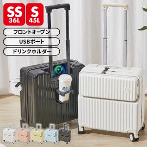スーツケース フロントオープン 機内持ち込み 前開き キャリーケース ドリンクホルダー USBポート カップホルダー キャリーバッグ S SS 多機能スーツケース
