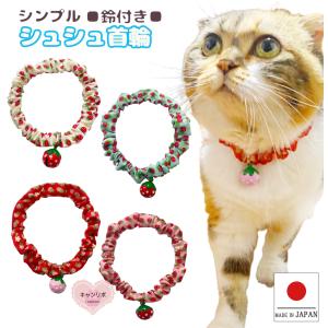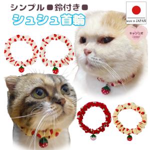 手作り 猫 首輪 猫首輪 猫用首輪 ねこ かわいい 軽量 シンプル シュシュ首輪 小粒苺 鈴付き