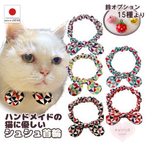 手作り 猫 首輪 猫首輪 猫用首輪 ねこ かわいい 軽量 リボン シュシュ首輪 鈴付き 唐草模様