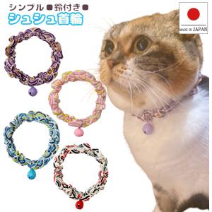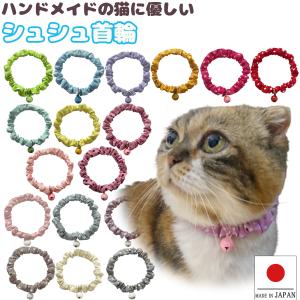 手作り 猫 首輪 猫首輪 猫用首輪 ねこ かわいい 軽量 シンプル シュシュ首輪 くすみカラー 鈴付き