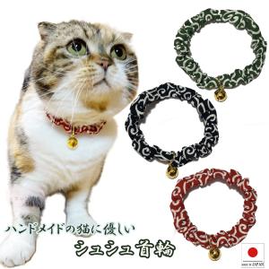 手作り 猫 首輪 猫首輪 猫用首輪 ねこ かわいい 軽量 ぷくふわ シュシュ首輪 唐草模様