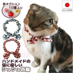 手作り 猫 首輪 猫首輪 猫用首輪 ねこ かわいい 軽量 リボン シュシュ首輪 市松模様