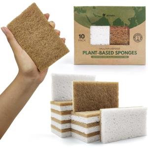 AIRNEX 10個入り バイオ分解性天然キッチンスポンジ - コンプストブル セルロース スポンジとココナッツファイバー スクラバー 台所スポンジ - エコフレンドリー