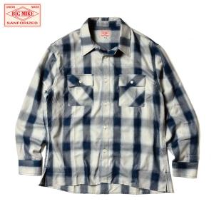 BIGMIKE ビッグマイク オンブレチェックシャツ ホワイト ブルー 白青 オンブレシャツ チェックシャツ 長袖シャツ US ワークブランド