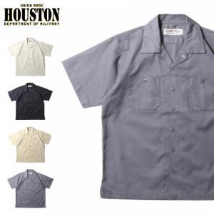 HOUSTON ヒューストン 半袖ワークシャツ 無地 オープンカラー 開襟 ボックス TCツイル アメカジ ワーク ミリタリー