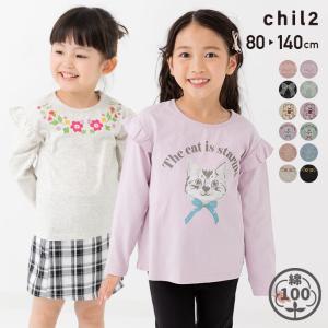 ネコポス送料無料 キッズ 長袖 Tシャツ ベビー服 子供服 ロンT 肩フリル 女の子 綿100% 秋 80 90 100 110 120 130 140cm [M便 1/1]