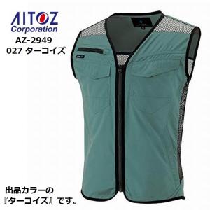 1680円〜2080円 価格破壊 アイトス メッシュ ベスト メンズ 夏 薄手 ワークベスト Vネック 春夏用 吸汗 速乾 通気性 消臭 軽量 ストレッチ AZ-2949 ターコイズ