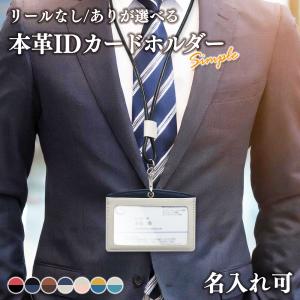 名入れ可 縦型 IDカードホルダー リール付きネックストラップ 社員証ホルダー 革 レザー メンズ レディース 選べるリールカラー ギフト 就職祝 餞別