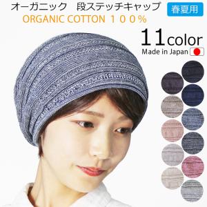 医療用帽子 春夏秋用 オーガニック段ステッチキャップ【無縫製】 日本製 抗がん剤帽子 脱毛 手術後用 ケア帽子 薄毛隠し 白髪隠し