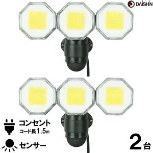 2個セット センサーライト コンセント式 屋外用 大進 人感 DLA-18T300 LED 防犯 AC 100V 3灯式 電源 外灯 駐車場 防水規格 防雨型
