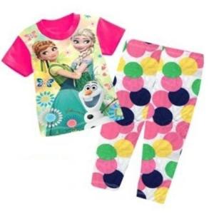 キッズパジャマ 半袖 長ズボン アナと雪の女王 上下セット (ブルー&ホワイト)