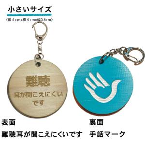 両面 手話キーホルダー 耳が聞こえません 赤文字 大サイズ 小サイズ 単品 手話 ひのき メッセージ サイン キーホルダー